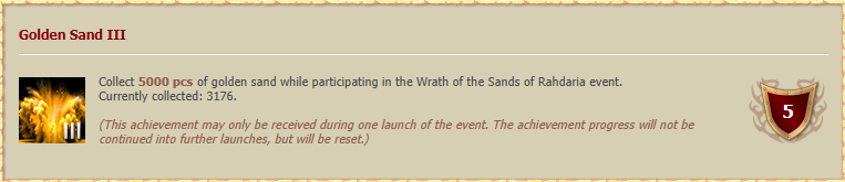 - May randomly appear instead of a normal mob in combat or hunting mode. -> 1 progress point per kill, along with Golden Sand and kill count