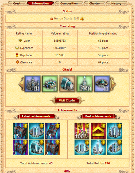 Do not forget about the rating of the clan. It is determined by the amount of experience and valor gained by