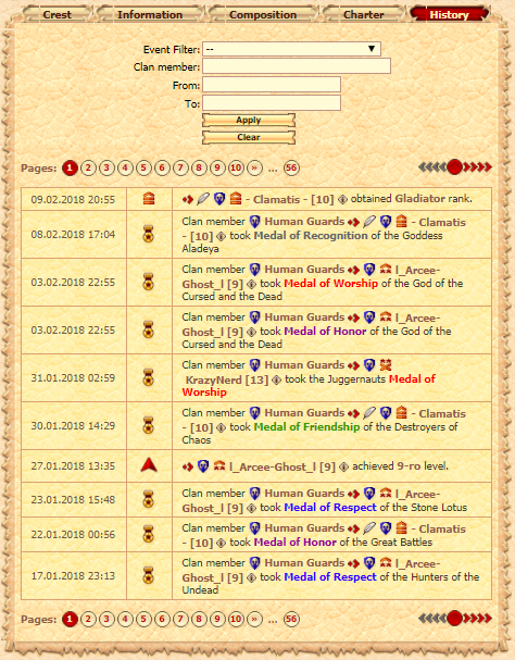The history of the clan – is a special tab in the clan information window, where the