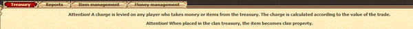 clan treasury, the player also pays the clan tax. In such clans there is a list of things added and taken from