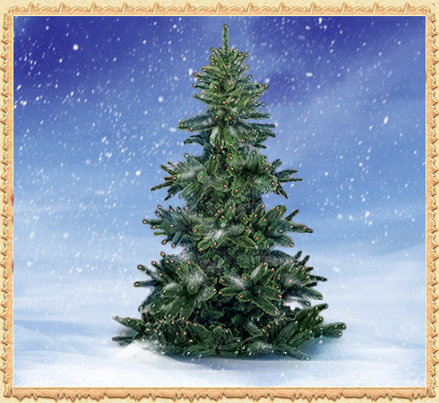 from shining snow, instead of arms - tree branches and in the eyes - cold sparkling flames