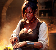 Any job is a success in the hands of this skilled craftswoman: she can restore ancient armour and make the most intricate item in no time. For Soygura puts all her heart into her creations. The craftswoman is never without something to do and she is generously rewarded for her work.