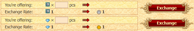 Enter the number of platinum thalers or diamonds in the appropriate window and click «Exchange».