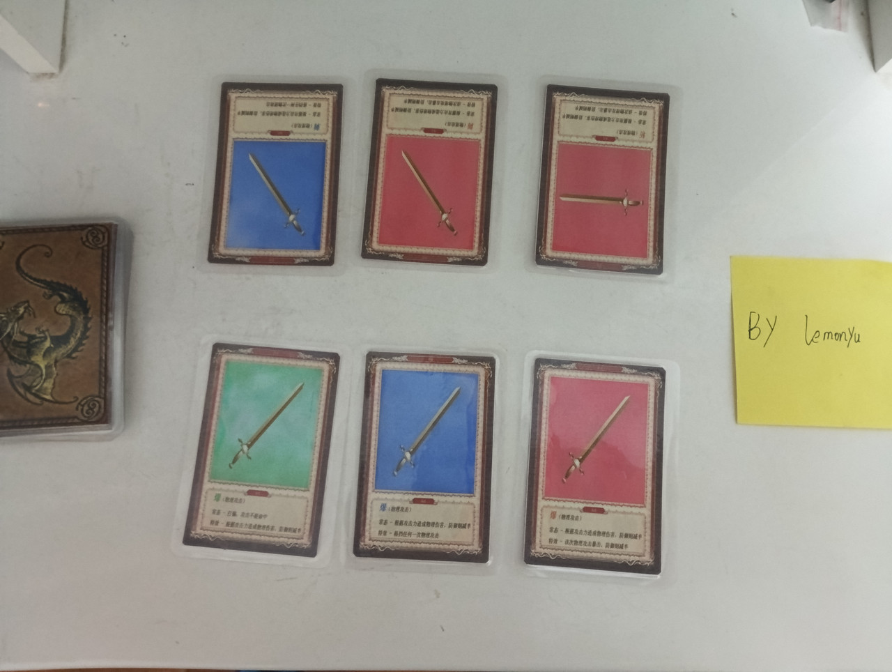 Step4: Each player check the 3 cards they have already opened and calculates additional points according to the color and attack direction of the cards.(see scoring rules for details) After that each player throw these 3 cards into discard pile.