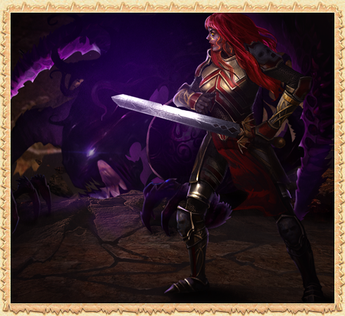 Her blade shines in the near total darkness, cleaving the mirages of the Limbo of Mystras and slaying the beasts of the underworld. Even their Leader would tremble when facing this warrior lady, while his fearsome grin is turning into a grimace of fear.